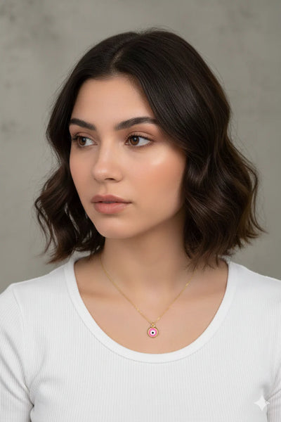 This stainless steel colorful mini evil eye spinner necklace offers a stylish and protective accessory for daily wear. The rotating evil eye design adds a playful and unique element while the durable steel structure provides long lasting shine and resistance to tarnishing. Lightweight and comfortable, it suits both casual and modern outfits. A great choice for women who appreciate symbolic minimal and distinctive jewelry pieces.