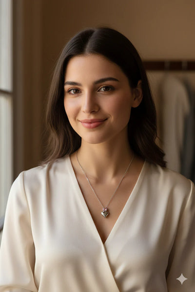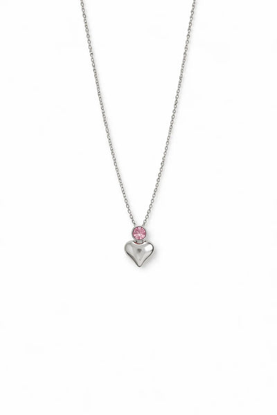 This stainless steel pink stone heart necklace offers a delicate and feminine touch to any style. The vibrant pink gemstone creates a soft romantic look while the durable steel structure ensures long lasting shine and resistance to tarnishing. Its lightweight design provides comfort for daily wear and its elegant heart shape makes it a thoughtful gift choice. Ideal for women who prefer stylish minimal and modern jewelry pieces.